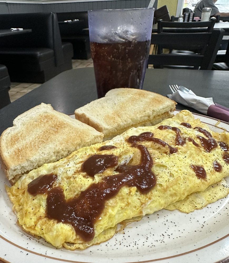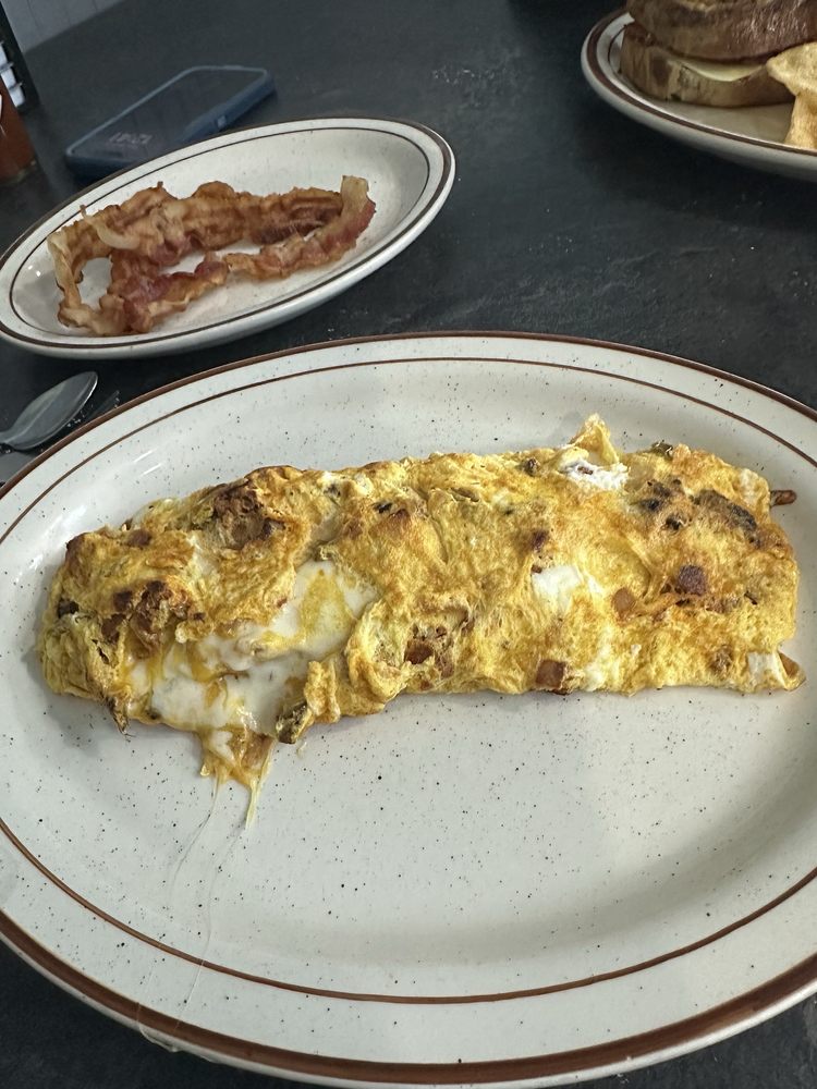 2 eggs, ham, onion, & green pepper. Served on your choice of bread